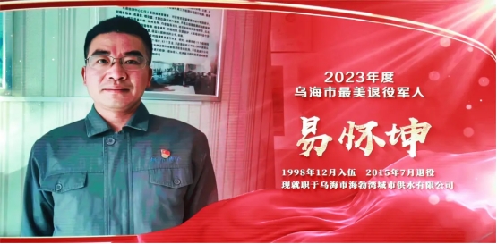 市城投集團公司職工韓江濤,市城投集團所屬子公司烏海市海勃灣城市供水公司職工易懷坤,烏海市污水處理公司職工魏軍,喜獲“2023年度最美退役軍人”榮譽稱號。