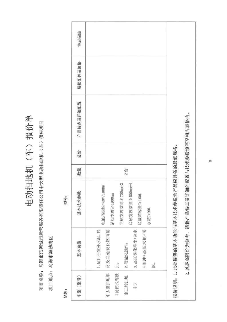 烏海市濱河城市運(yùn)營(yíng)服務(wù)有限責(zé)任公司中大型電動(dòng)掃地機(jī)(車)供應(yīng)項(xiàng)目詢價(jià)文件