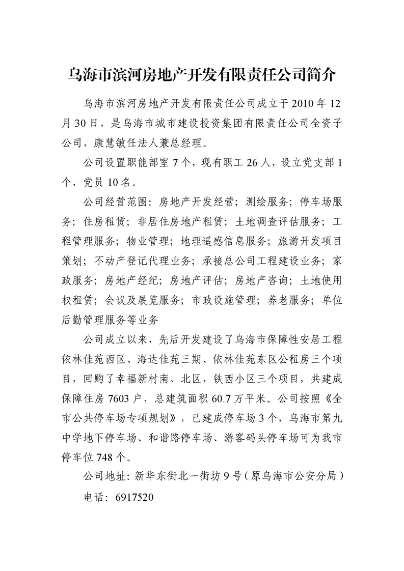 - 2025-03-10烏海市濱河房地產(chǎn)開發(fā)有限責(zé)任公司2024年度信息公開報告