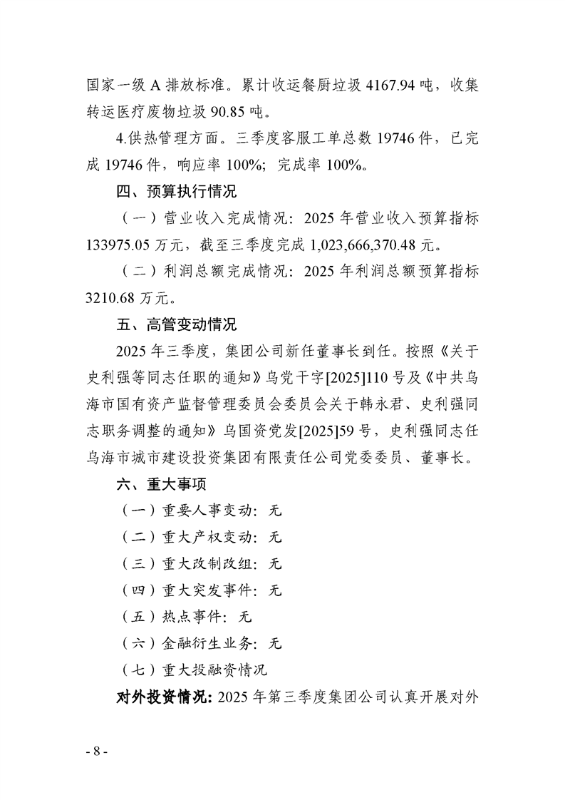 烏海市城市建設(shè)投資集團(tuán)有限責(zé)任公司 2025年度第三季度信息公開(kāi)報(bào)告